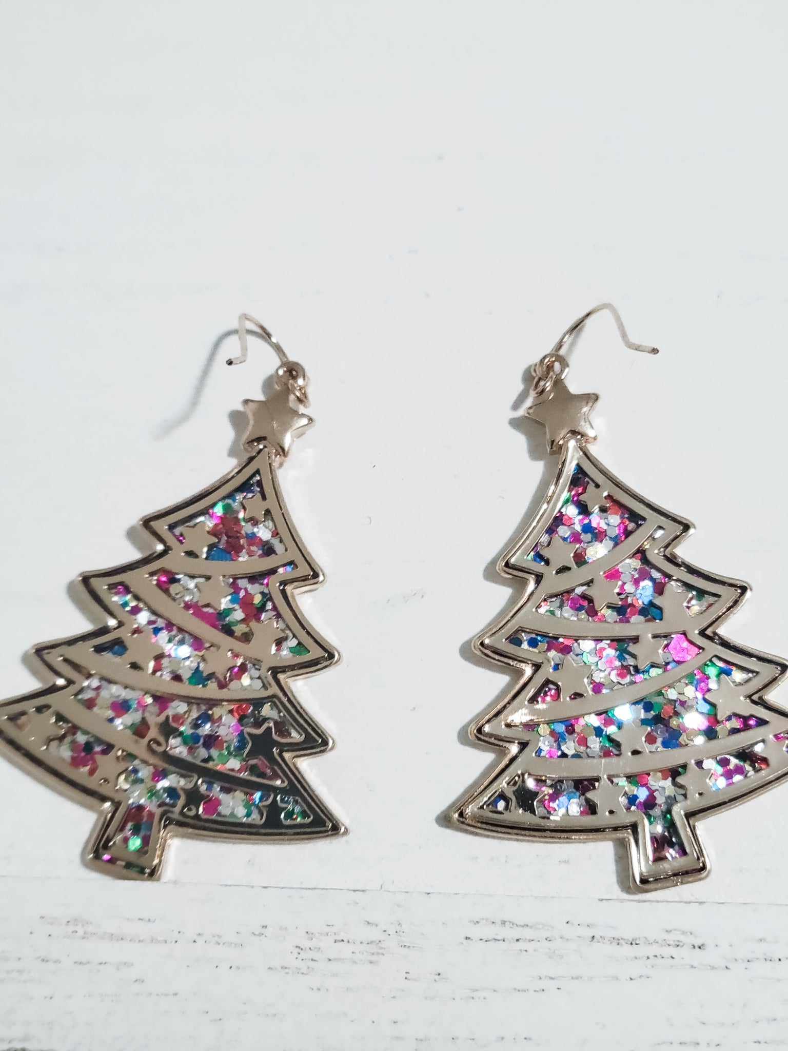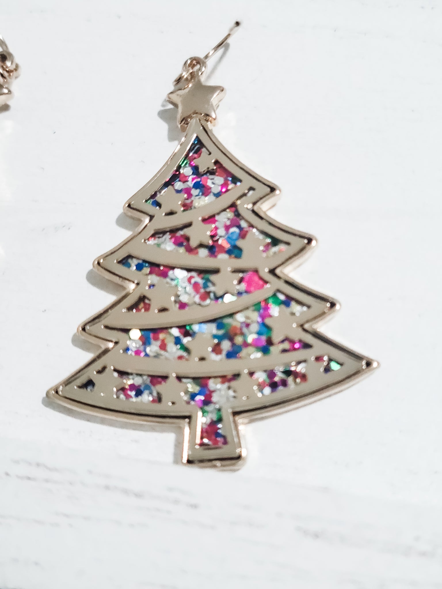 These fun and festive Gold & Glitter Christmas Tree Dangle Earrings are a must-have for the holiday season! Lightweight and sparkly, they're perfect for your holiday parties or as a gift. With a length of 2.5", they'll add some whimsy to any outfit. Fish hook design makes them easy to wear.