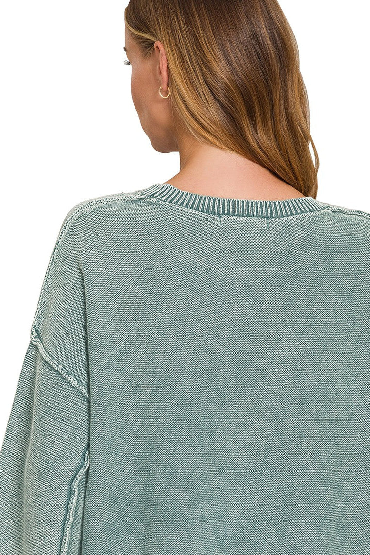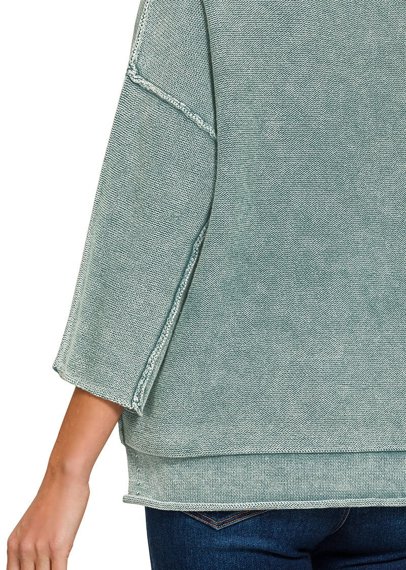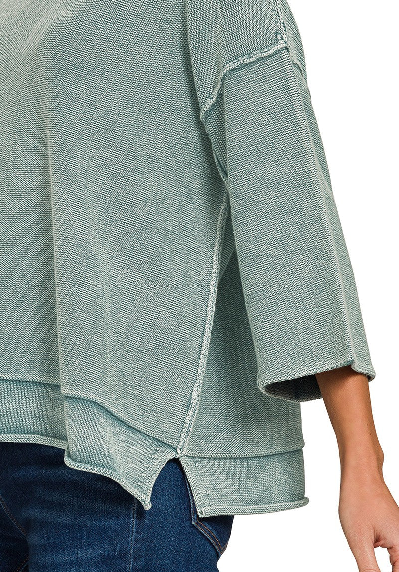 Effortlessly cool and undeniably comfy, this washed boxy sweater is your new go-to layer. The relaxed 3/4 sleeves hit just right, while cheeky side slits add movement and a hint of sass. Throw it on with your favorite jeans or dress it up—this versatile piece does it all with laid-back charm.